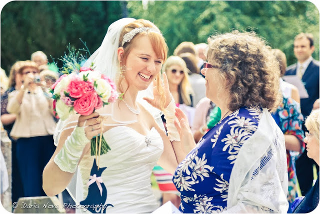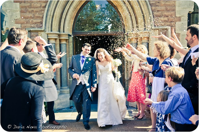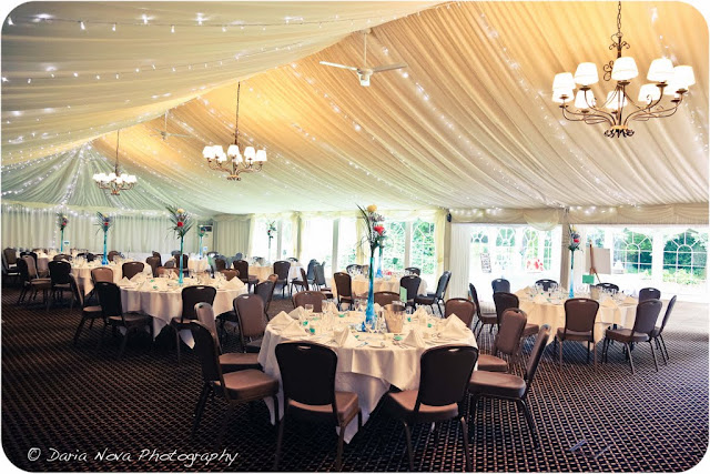 Finally a full feature on Mary and Karl's wedding which I photographed in June.What a day it was! Stunning church, amazing guests and very charming couple! Mary is a musician and I loved the way she brought this in the day. Check the photos of Mary with her horn. Karl is a Spurs fan, so they used blue as a theme colour. I think it is great when couples personalise their big days in such a way. Also, aren't the gnomes a very sweet idea for table decorations? Enjoy the photos from this special day.